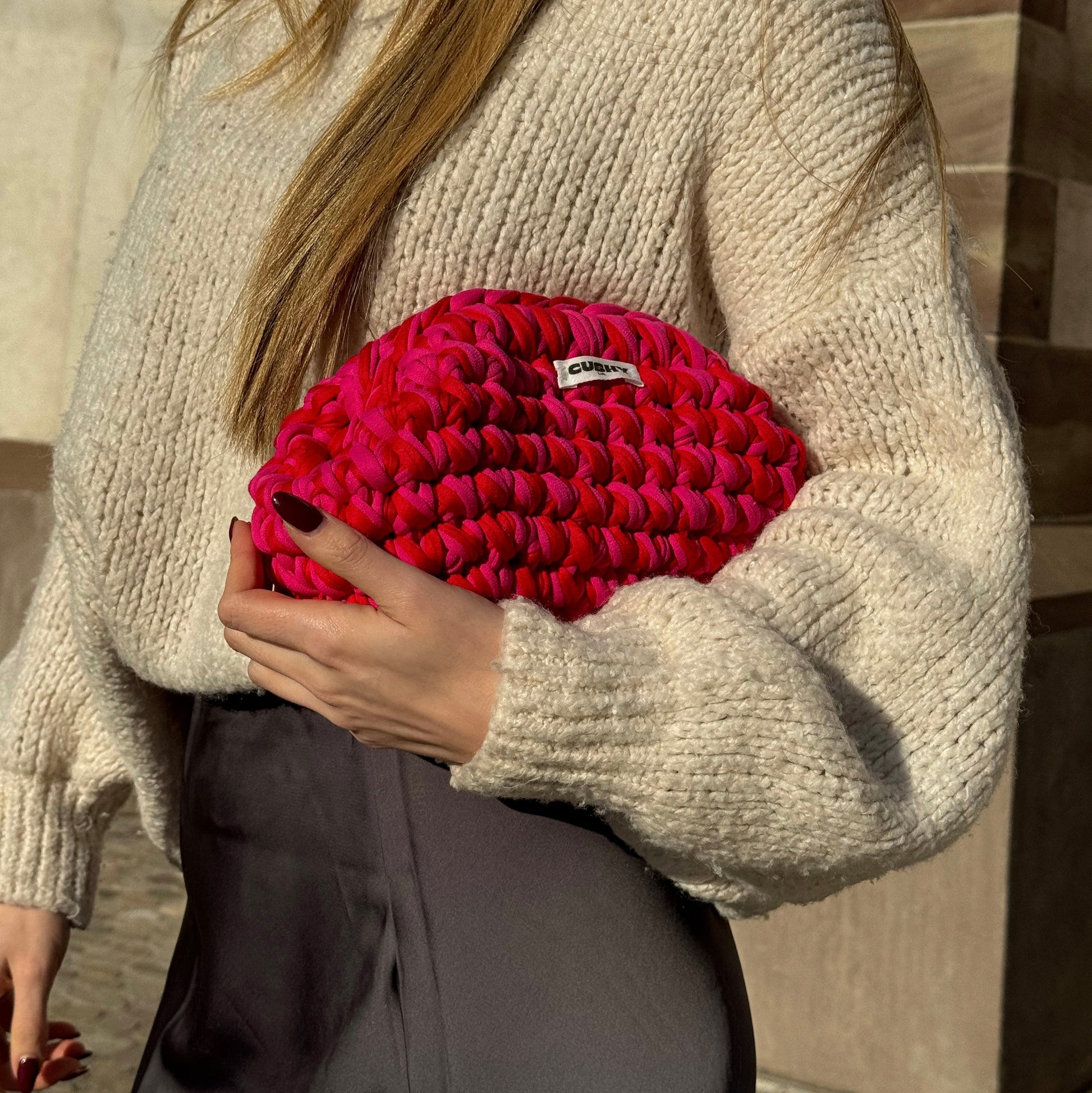 Chaque sac est réalisé à la main avec amour à partir de fil de tissu 100% recyclé de grande qualité provenant d'Europe. Ils sont conçus avec du fil issus du recyclage textile qui allie qualité et respect de l'environnement. Ajoutez une touche d’authenticité et de douceur à votre garde-robe avec nos accessoires crochetés à la main.