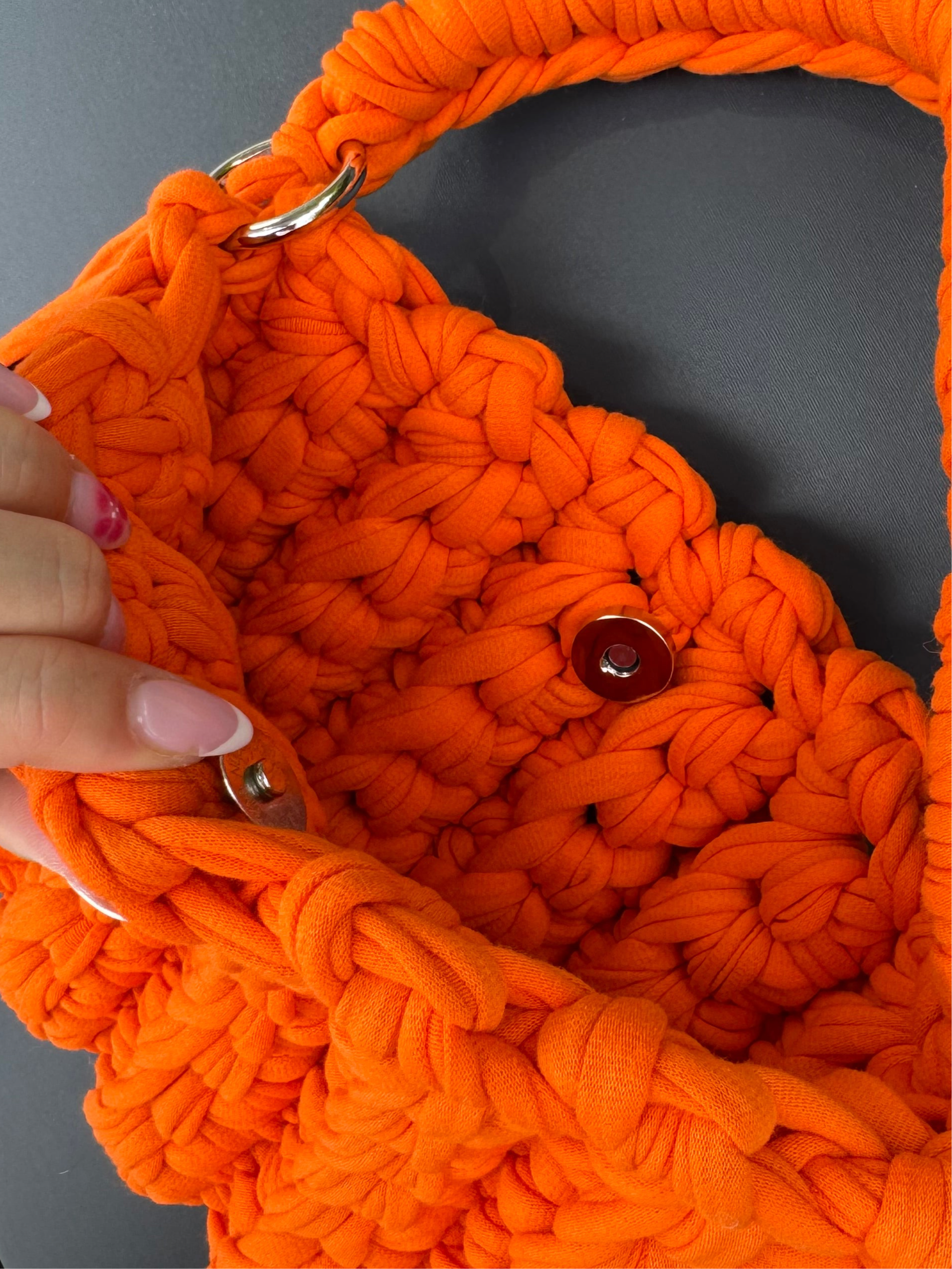 Chaque sac est réalisé à la main avec amour à partir de fil de tissu 100% recyclé de grande qualité provenant d'Europe. Ils sont conçus avec du fil issus du recyclage textile qui allie qualité et respect de l'environnement. Ajoutez une touche d’authenticité et de douceur à votre garde-robe avec nos accessoires crochetés à la main.