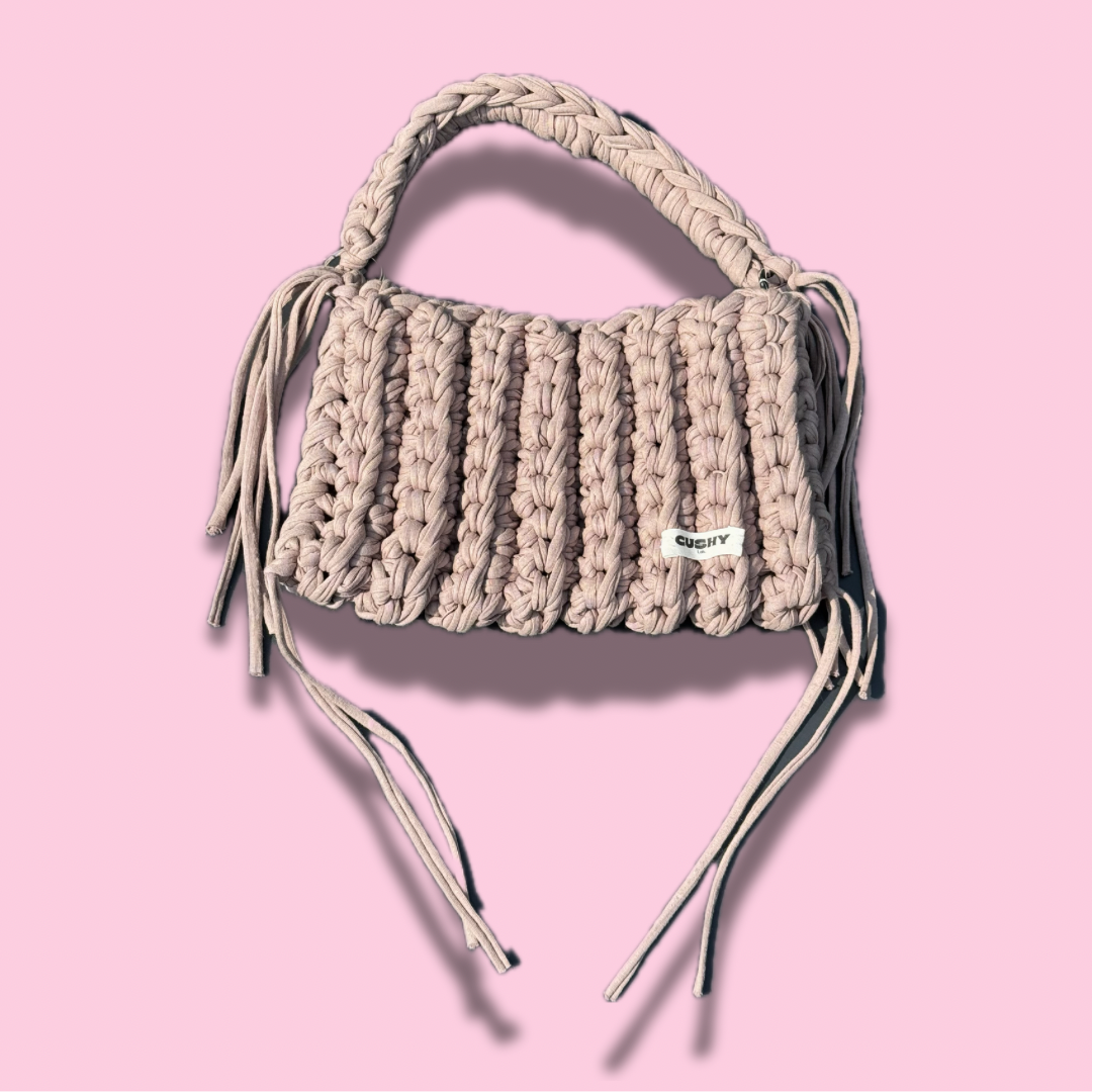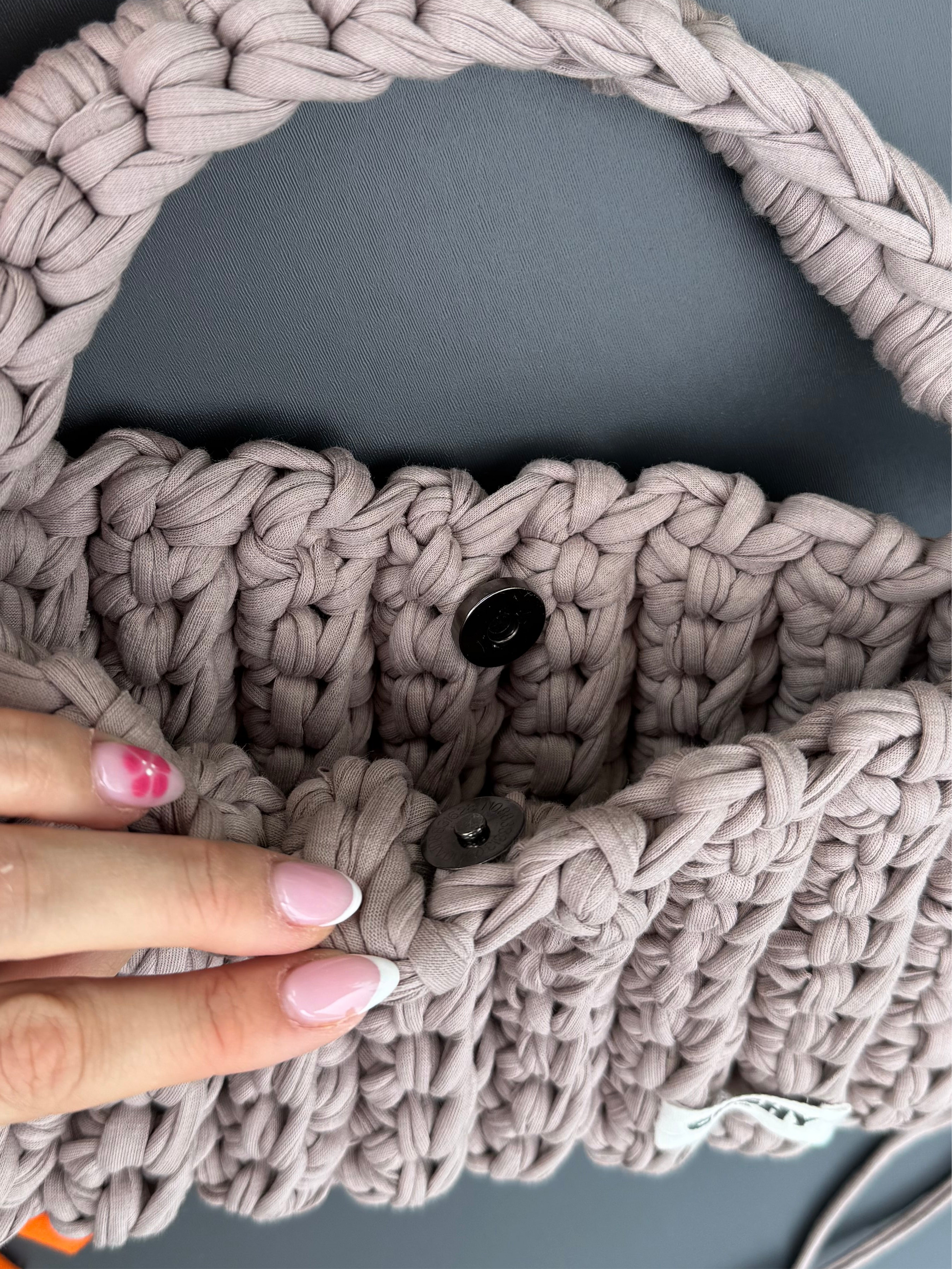 Chaque sac est réalisé à la main avec amour à partir de fil de tissu 100% recyclé de grande qualité provenant d'Europe. Ils sont conçus avec du fil issus du recyclage textile qui allie qualité et respect de l'environnement. Ajoutez une touche d’authenticité et de douceur à votre garde-robe avec nos accessoires crochetés à la main.